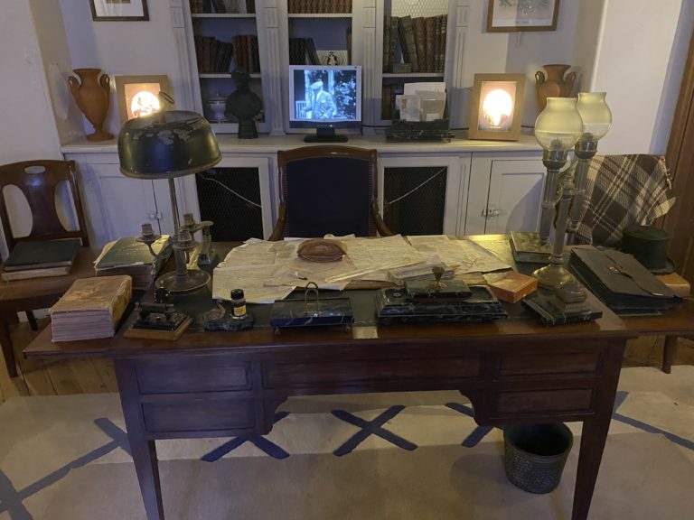 A l’ombre de feuillus centenaires, le PAVILLON DE LA LITTÉRATURE décline ses tables d’actualité littéraire et de correspondance des grands écrivains et génies.