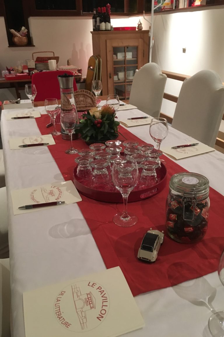 A l’ombre de feuillus centenaires, le PAVILLON DE LA LITTÉRATURE décline ses tables d’actualité littéraire et de correspondance des grands écrivains et génies.