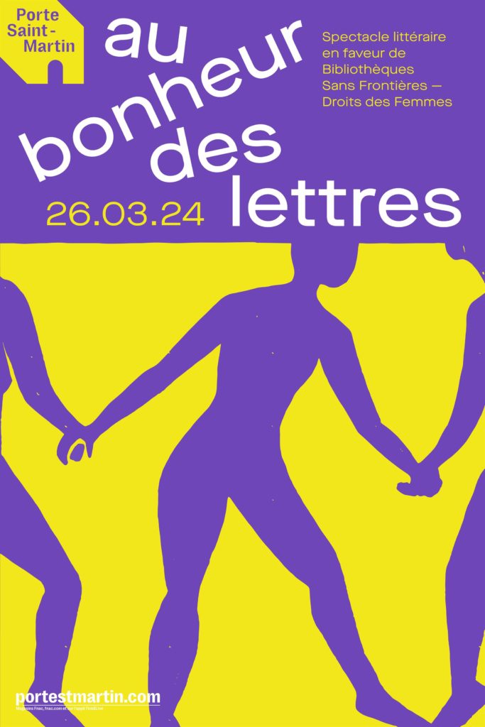 Un spectacle unique en faveur des actions de Bibliothèques Sans Frontières pour l’accès des filles et femmes à l’éducation et la culture, parrainé par Augustin Trapenard, mis en scène par Johanna Boyé accompagné d’Alexandre Tharaud au piano, le mardi 26 mars 2024 au Théâtre de la Porte Saint-Martin à Paris